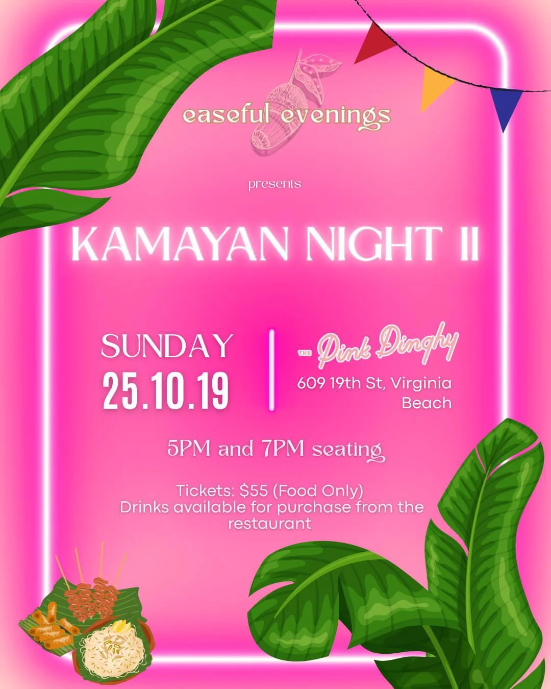 Hello there! We will be doing a Kamayan Night II Pop Up at the Pink Dinghy on 10/19 with 2 seatings at 5PM and 7PM. Tickets are available in the “Place Order Tab”.